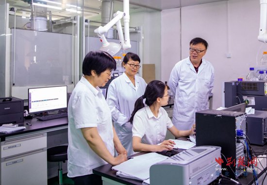 中融华威生物制药(湖北)有限公司专家工作站首席专家张文宝教授(右一)正在主持实验工作。图片提供:通讯员